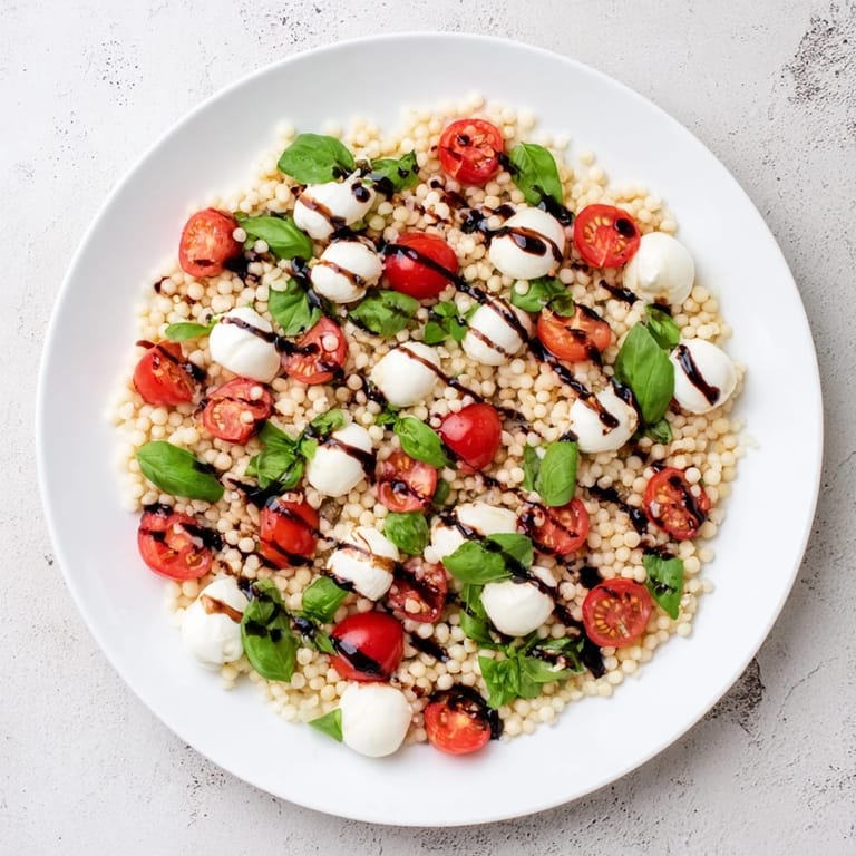 This salad is naturally vegetarian and gluten-free if using gluten-free couscous. For dairy-free, substitute vegan mozzarella or use avocado instead. Always check balsamic glaze labels for additives related to specific allergies.