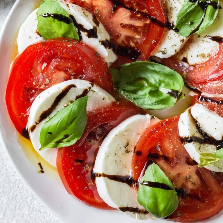 - Drizzle the olive oil first in a thin stream, then the balsamic glaze in a slightly heavier pattern so it pools and glistens. Don't rush this part; it's the final grace note.