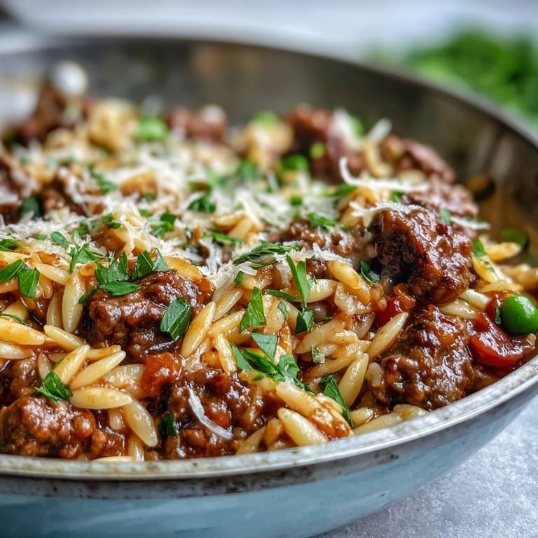 Pinterest The smell of browning beef and garlic hit me the moment I walked through the door after a long shift, and I knew my neighbor was testing another one-pot idea. She swore this orzo version was different, easier, almost foolproof. I grabbed a fork and took a bite straight from her skillet, and the tender pasta soaked in that savory tomato broth made me forget I was still wearing my jacket. That night, I scribbled the basics on a napkin and never looked back.