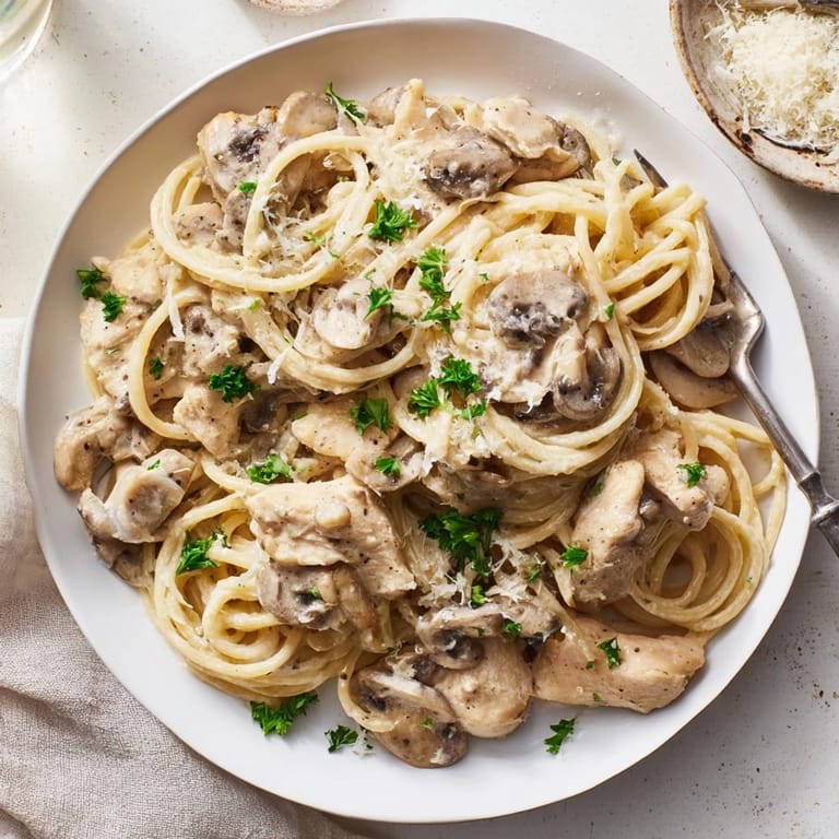 This dish is highly adaptable. You can substitute the chicken with turkey breast or omit it entirely for a vegetarian version by adding extra mushrooms or a can of white beans for protein. For those with dietary restrictions, gluten-free pasta and a gluten-free flour blend work perfectly. If you prefer a richer experience, a splash of half-and-half or cream can be added to the sauce during the final simmering stage.