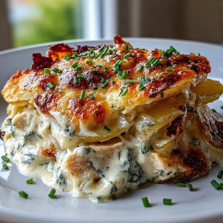 Pinterest My neighbor brought this casserole to a potluck last spring, and I watched people go back for thirds without even checking what it was. When she finally told me the secret was ranch seasoning mixed into the cream sauce, I realized I'd been overcomplicating comfort food my whole life. The magic isn't in fancy techniques—it's in those tender potato layers soaking up every bit of creamy, savory goodness while the chicken stays impossibly juicy underneath.