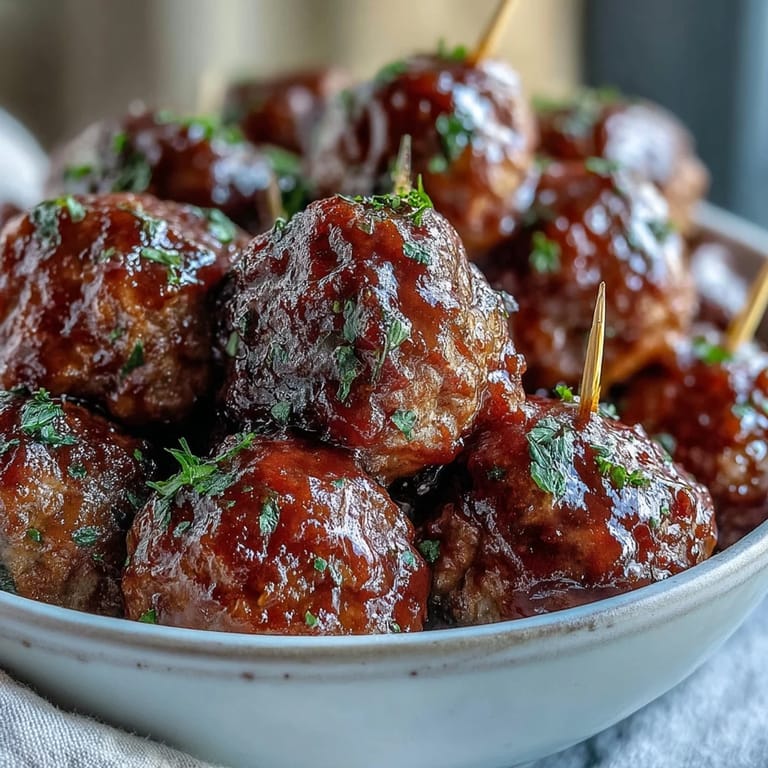 Pinterest My neighbor brought these to a potluck years ago, and I watched the serving dish empty in minutes. The combination sounded odd when she described it, but one bite explained everything. That glossy, sticky sauce clinging to each meatball was both nostalgic and surprising. I asked for the recipe immediately, scribbling it on a napkin. It became my go-to for every gathering since.