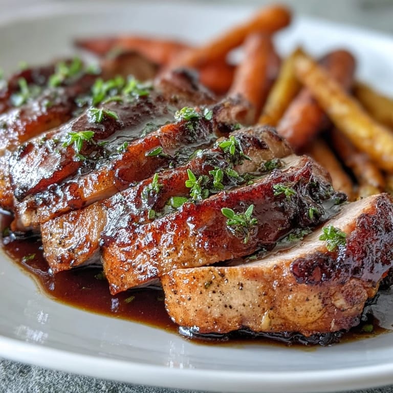 Pinterest There's something about the way a pork tenderloin browns in a hot oven that makes the whole kitchen smell like something special is happening. My mom used to make this for Sunday dinners, except hers took hours and involved multiple pans scattered across the stovetop like some kind of culinary battlefield. One evening I was in a rush, had twenty minutes before guests arrived, and decided to throw everything on one sheet with those beautiful rainbow carrots from the farmers market. The honey-balsamic glaze caramelized into this glossy mahogany coating while the carrots turned sweet and jammy at the edges, and somehow that hasty improvisation became my go-to dinner now.
