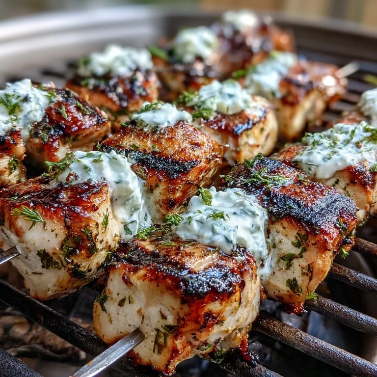 For perfectly cooked skewers, ensure your grill is properly preheated before adding the chicken. This creates that delightful sear that locks in juices while preventing sticking. When checking for doneness, look for firm chicken with clear juices - a meat thermometer should read 74°C (165°F) at the center. Allow the tzatziki to chill for at least 30 minutes before serving to let the flavors fully develop.