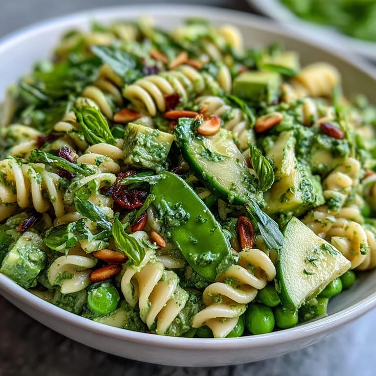 Pinterest Last spring, I found myself staring at a farmers market haul of impossibly green vegetables and thinking there had to be something better than the usual heavy pasta salads sitting in mayonnaise. A friend casually mentioned green goddess dressing while we were loading groceries, and something clicked—bright herbs, creamy but light, the kind of thing that tastes like the season itself. That afternoon I threw together this salad almost by accident, and it became the dish I made for every gathering that followed.