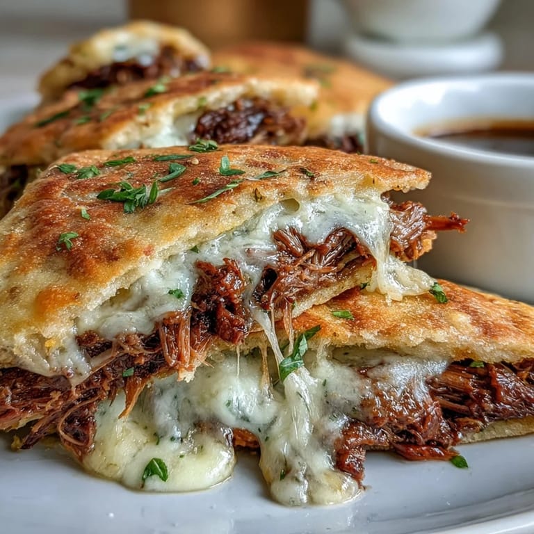 You can substitute naan with ciabatta or a soft baguette for a more traditional French dip feel. For extra layers of flavor, consider adding sautéed mushrooms or caramelized onions. If you prefer a spicy kick, mix chopped pickled jalapeños into the shredded beef. For dietary needs, use gluten-free naan and tamari for a gluten-free version, or plant-based butter and cheese alternatives for a dairy-free meal.